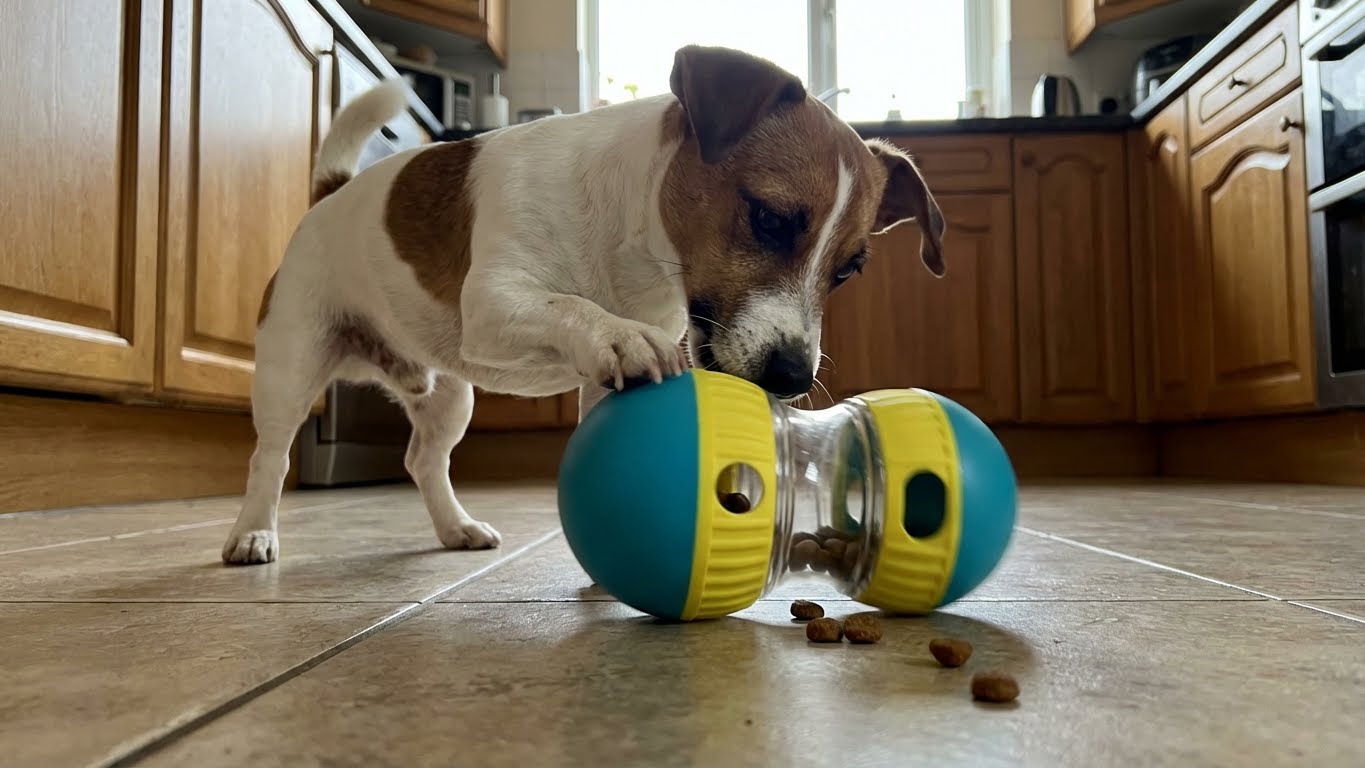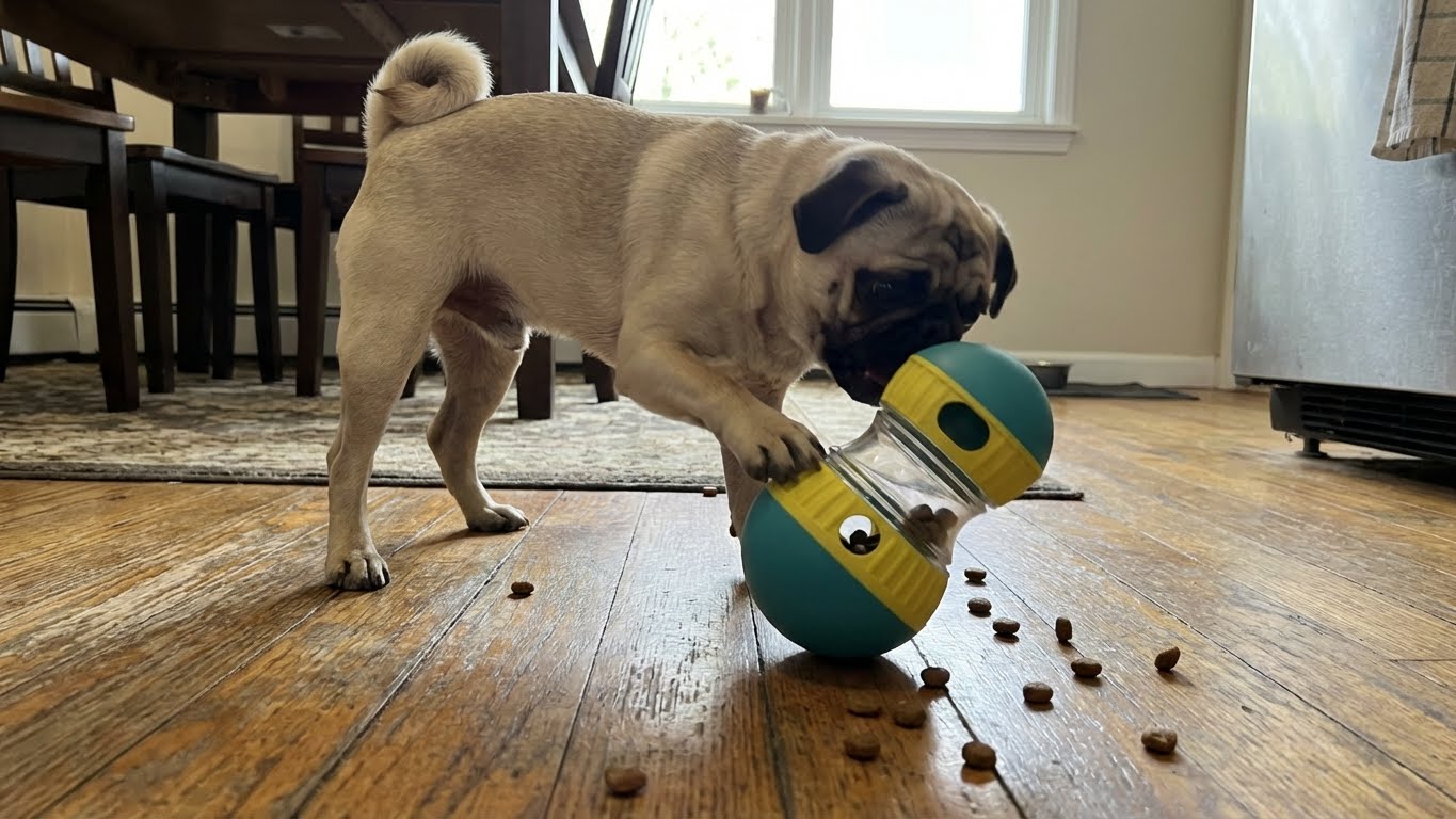 Turns feeding into a game. My dog enjoys it and no longer rushes through meals.