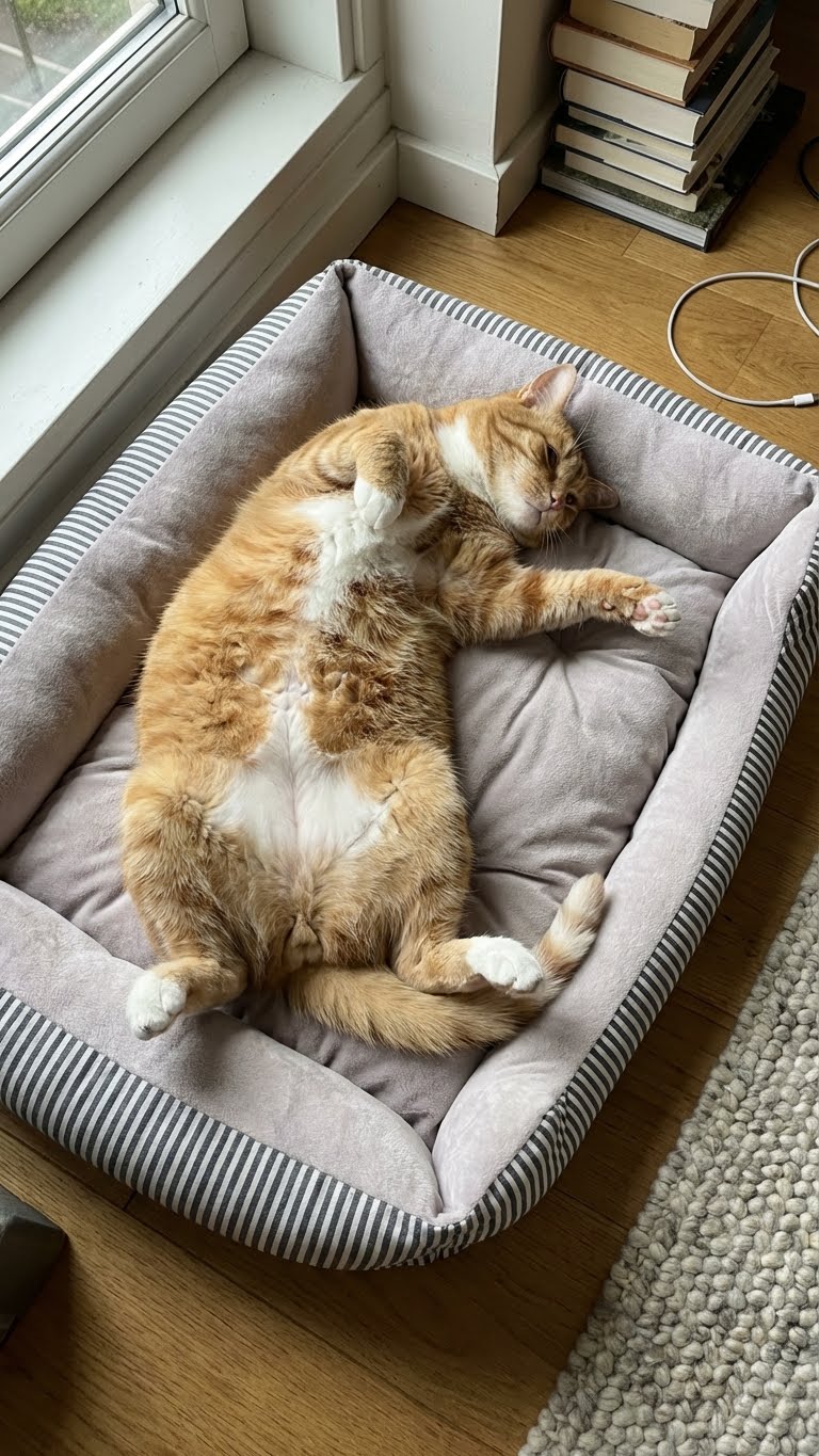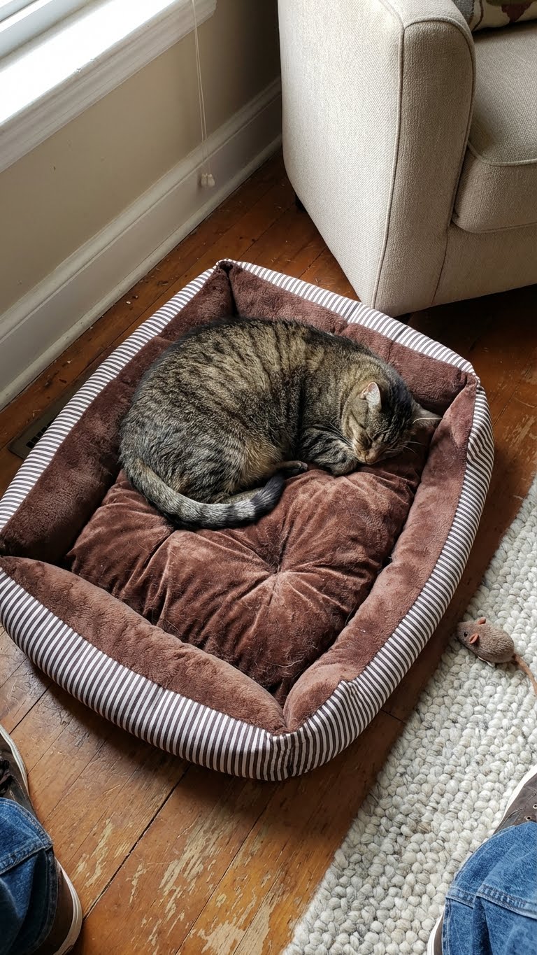 We placed the bed in the corner of the living room, and it quickly became our cat’s favorite spot. She rests there quietly while we go about our day.