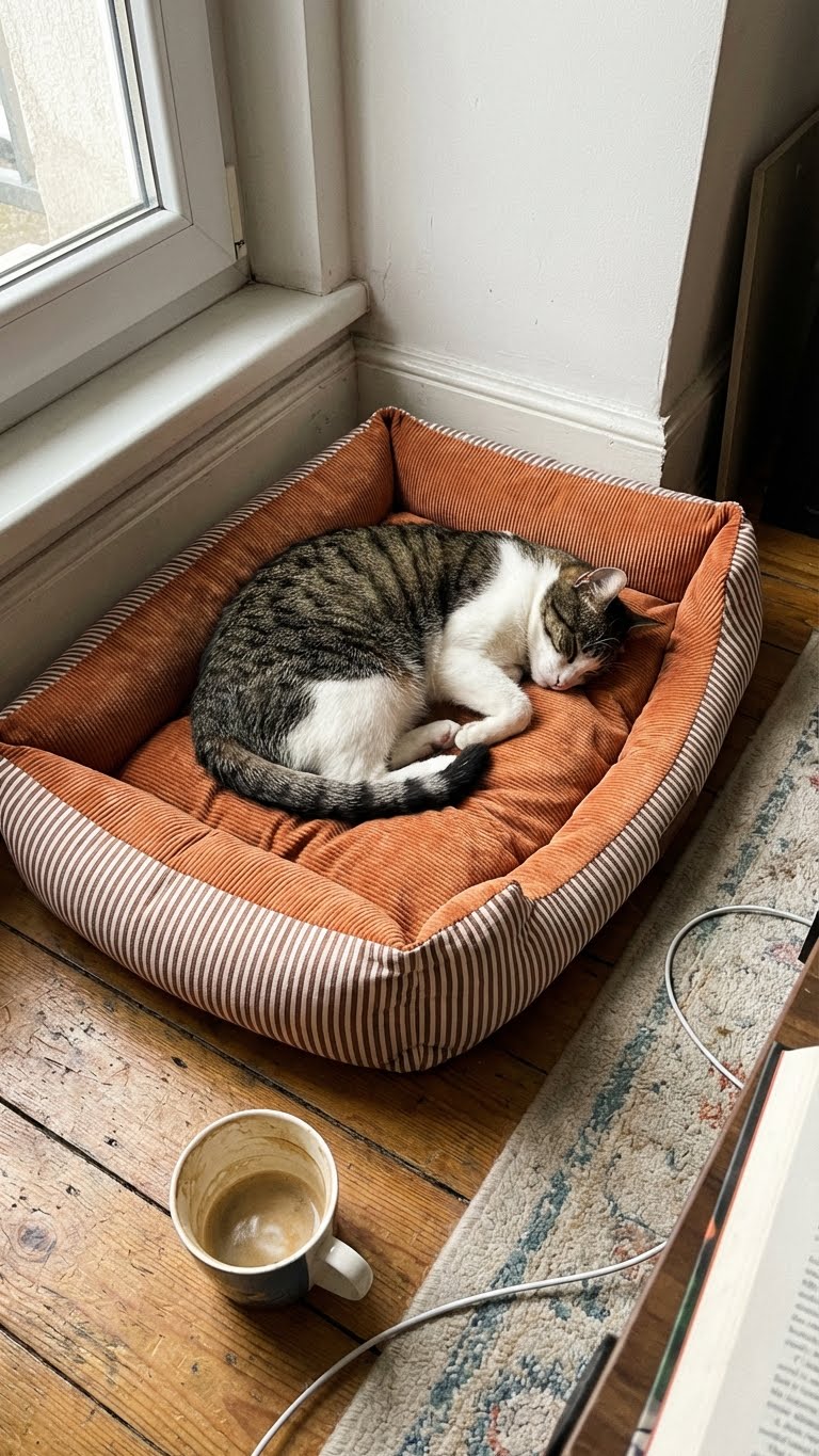I sit by the window with my coffee and a book, and my cat lies on the bed next to me in the sun. It feels calm and routine now—exactly what I hoped for.